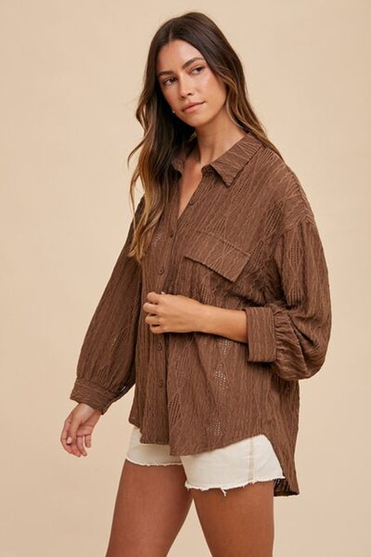 Annie Wear Openwork Button down Drop Shoulder Shirt