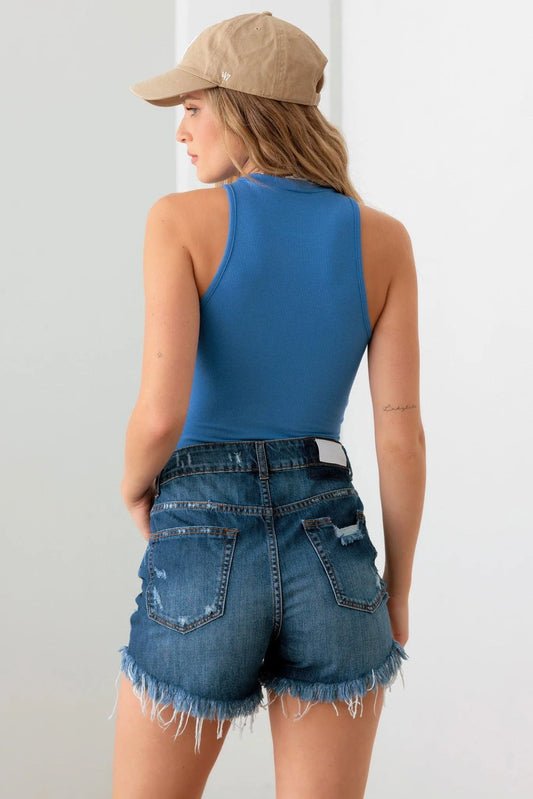 Blue High-Rise Ripped Distressed Denim Shorts