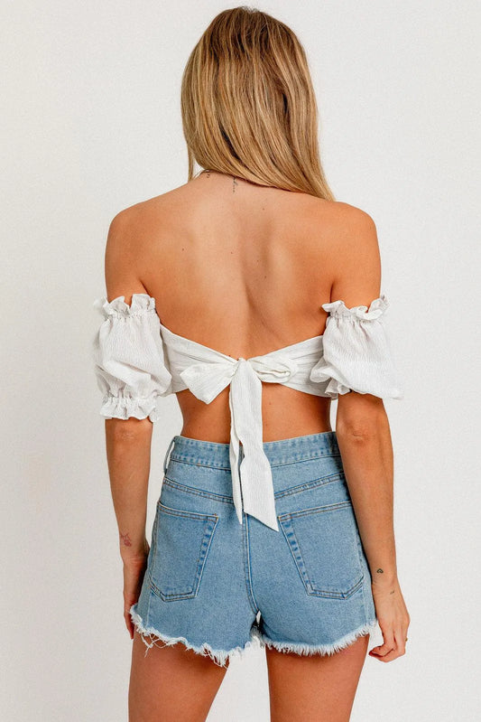 Off Shoulder Frill Stripe Ruffle Crop Top